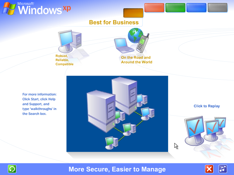 | Two personal computer towers are shown in the Windows XP tour. I have a hearing disability, so I'm going to yield to that community and not go back to verify the vocal presentation. However I'm sure it's relevant. | ![]() | ||